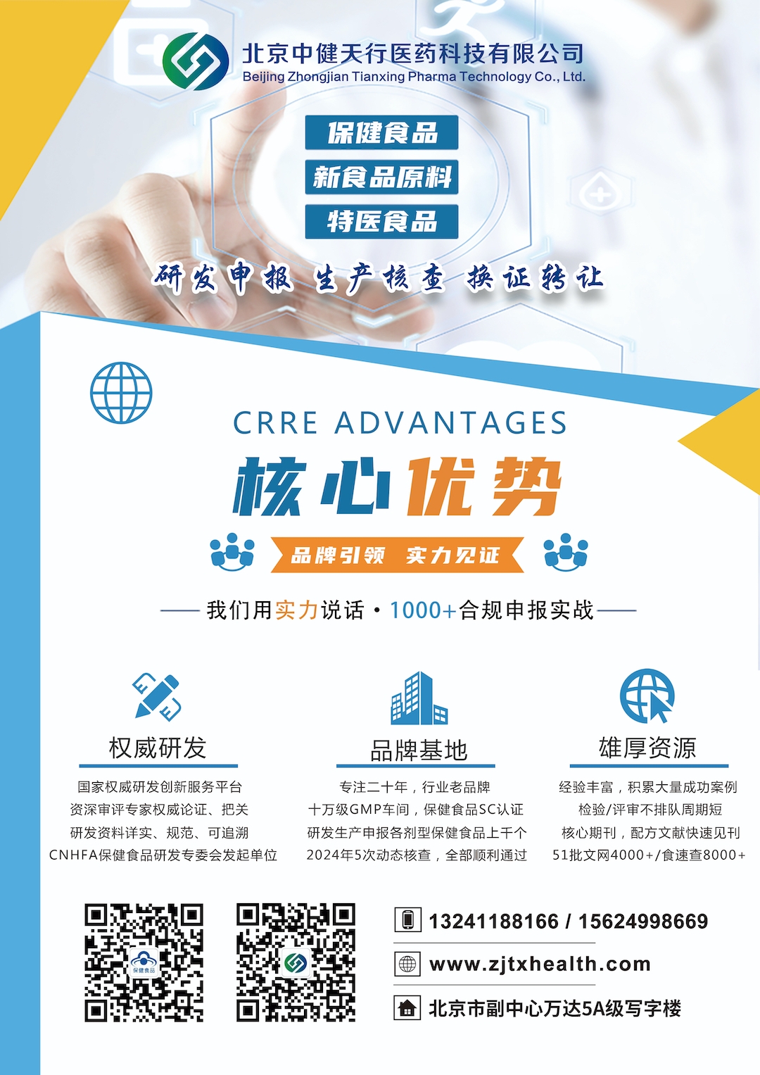 北京中健天行醫(yī)藥科技有限公司(ZJTX PHARMA)成立于2013年,深耕保健食品、“三新”食品、特醫(yī)食品研發(fā)申報(bào)十余載,先后獲國(guó)家高新技術(shù)企業(yè)、北京市科技型中小企業(yè)、ISO9001體系認(rèn)證、北京市質(zhì)量管理先進(jìn)集體等資質(zhì)榮譽(yù)。我們始終以"注冊(cè)備案精準(zhǔn)化、功能評(píng)價(jià)科學(xué)化、合規(guī)體系標(biāo)準(zhǔn)化"為核心競(jìng)爭(zhēng)力,在保健食品及新食品原料合規(guī)領(lǐng)域成果豐碩,累計(jì)助力超1000家企業(yè)的產(chǎn)品合規(guī)上市,新法規(guī)實(shí)施以來已成功申報(bào)100余項(xiàng)保健食品新產(chǎn)品,完成20多個(gè)產(chǎn)品的動(dòng)態(tài)核查,申報(bào)及核查數(shù)量均居全國(guó)前列,同時(shí)雙無換證率先獲國(guó)家總局受理,新功能研發(fā)完成3項(xiàng)臨床研究,并助力磷蝦油、牛大力粉、紅花苗、麥角硫因等數(shù)十種新食品原料推進(jìn)合規(guī)進(jìn)程,以實(shí)戰(zhàn)經(jīng)驗(yàn)鋪就高效合規(guī)的申報(bào)通路。我們可為企業(yè)提供涵蓋產(chǎn)品立項(xiàng)、研發(fā)生產(chǎn)、注冊(cè)檢驗(yàn)、臨床評(píng)價(jià)、合規(guī)申報(bào)、動(dòng)態(tài)核查及成果轉(zhuǎn)化的全鏈條一站式解決方案,誠(chéng)邀廣大企業(yè)攜手同行,共拓合規(guī)發(fā)展新藍(lán)海!