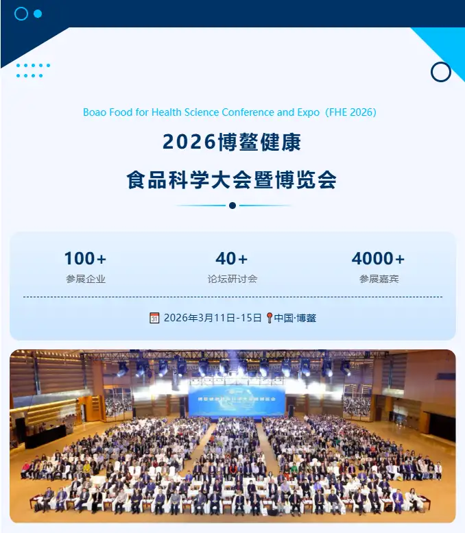 為促進全球健康食品科技同步,推動健康食品產業(yè)發(fā)展,由上海君石生命科學研究院主辦的“博鰲健康食品科學大會暨博覽會(FHE2026)”,將于2026年3月11日至15日,在海南博鰲亞洲論壇國際會議中心舉行。