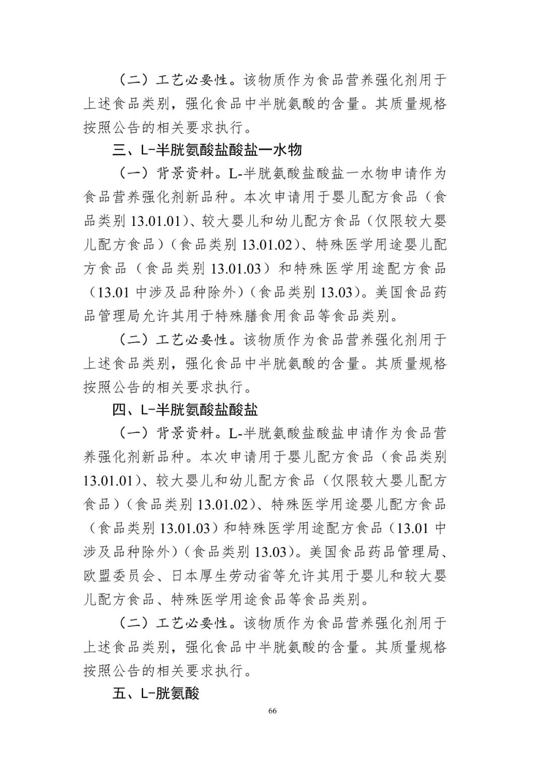 (2)L-半胱氨酸、L-半胱氨酸鹽酸鹽一水物、L-半胱氨酸鹽酸鹽、L-胱氨酸、L-組氨酸、L-鹽酸組氨酸一水物、L-鹽酸賴(lài)氨酸、L-賴(lài)氨酸醋酸鹽、L-苯丙氨酸、L-蘇氨酸的用量及使用范圍: