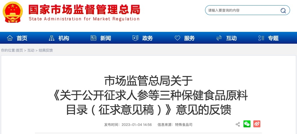 市場(chǎng)監(jiān)管總局于2022年10月25日至11月25日對(duì)《關(guān)于公開征求人參等三種保健食品原料目錄(征求意見稿)》(以下簡(jiǎn)稱《原料目錄》)向社會(huì)各界公開征求了意見,現(xiàn)將有關(guān)情況說明如下: