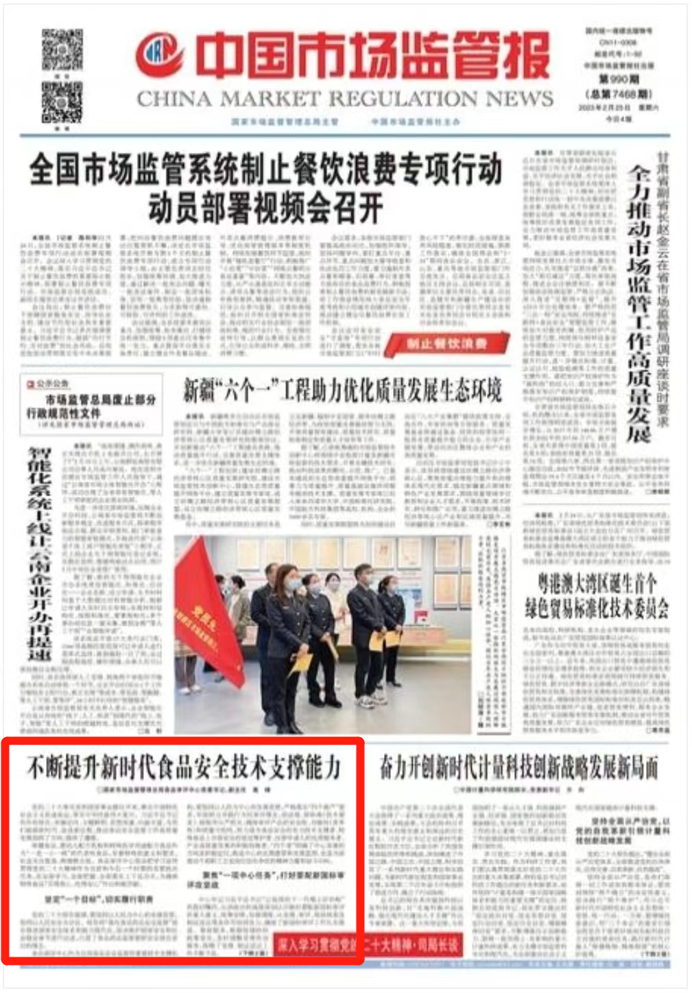 《中國(guó)市場(chǎng)監(jiān)管報(bào)》2023年2月25日第990期,刊登了食品審評(píng)中心黨委書(shū)記、主任高峰同志文章《不斷提升新時(shí)代食品安全技術(shù)支撐能力》,全文如下: