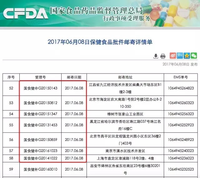 2017年6月8日,CFDA行政事項受理服務(wù)官網(wǎng)今年首次公布七個新獲批保健食品批準(zhǔn)證書,自2016年8月31日公布新獲批保健食品之后已時隔九個月!