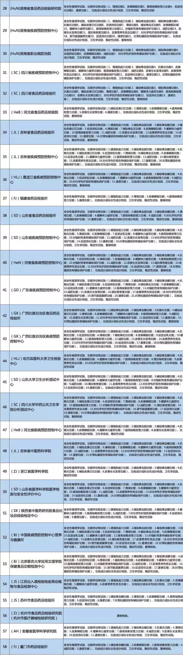 CFDA遴選的58家保健食品注冊檢驗(yàn)機(jī)構(gòu)名單(含檢驗(yàn)項(xiàng)目)
