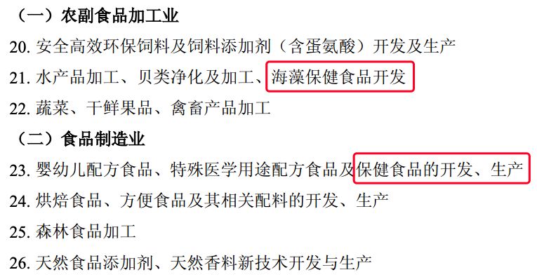 據(jù)了解,國家鼓勵外商投資的產(chǎn)業(yè)目錄領域包含“海藻保健食品開發(fā)”以及“保健食品的開發(fā)、生產(chǎn)”。