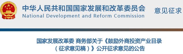 2月1日,為貫徹落實《國務院辦公廳關于聚焦企業(yè)關切進一步推動優(yōu)化營商環(huán)境政策落實的通知》(國辦發(fā)〔2018〕104號),國家發(fā)展改革委和商務部聯(lián)合發(fā)布了關于《鼓勵外商投資產(chǎn)業(yè)目錄(征求意見稿)》。
