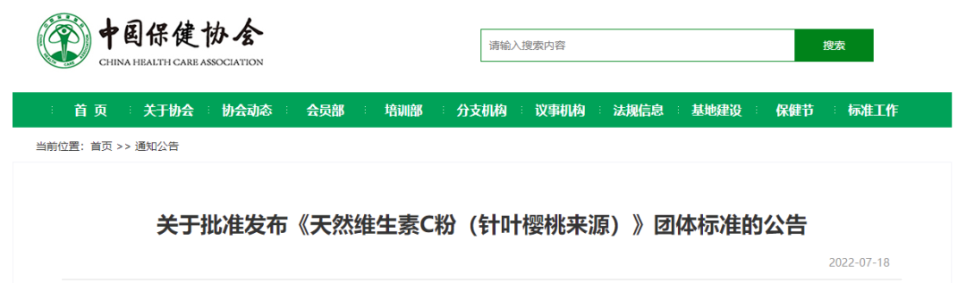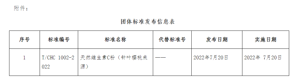 根據(jù)《中國保健協(xié)會團體標準管理辦法(試行)》相關規(guī)定,《天然維生素C粉(針葉櫻桃來源)》團體標準經(jīng)立項、起草、征求意見、審查等標準制訂程序,并通過中國保健協(xié)會批準,現(xiàn)予以發(fā)布。