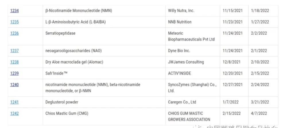 目前也有很多中國企業(yè)正在向美國FDA申請(qǐng)新膳食成分(New Dietary Ingredient, NDI),這可以從FDA的網(wǎng)站中看到,如下圖所示[6]。