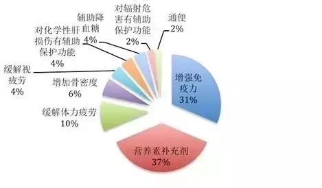 據(jù)統(tǒng)計,2016年5月CFDA公布批準(zhǔn)國產(chǎn)保健食品49個,43個首次批準(zhǔn)產(chǎn)品,6個技術(shù)轉(zhuǎn)讓產(chǎn)品。其中,營養(yǎng)素補充劑19個,30個功能性產(chǎn)品包括增強免疫力16個,緩解體力疲勞5個,增加骨密度3個,緩解視疲勞、對化學(xué)性肝損傷有輔助保護功能、輔助降血糖各2個,對輻射危害有輔助保護功能、通便各1個。