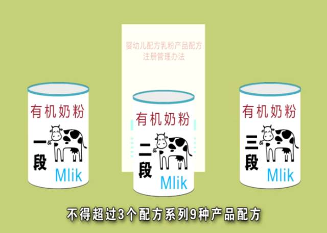 第九條 同一企業(yè)申請注冊兩個(gè)以上同年齡段產(chǎn)品配方時(shí),產(chǎn)品配方之間應(yīng)當(dāng)有明顯差異,并經(jīng)科學(xué)證實(shí)。每個(gè)企業(yè)原則上不得超過3個(gè)配方系列9種產(chǎn)品配方,每個(gè)配方系列包括嬰兒配方乳粉(0—6月齡,1段)、較大嬰兒配方乳粉(6—12月齡,2段)、幼兒配方乳粉(12—36月齡,3段)。