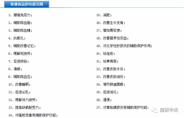 正式提出“保健功能目錄”概念,醞釀配套新法改革。保健功能目錄是指經(jīng)系統(tǒng)評價和驗證,具有明確的評價方法和判定標準的允許保健食品聲稱的保健功能信息列表。保健功能目錄包括保健功能名稱及說明等內(nèi)容。