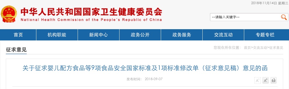 根據(jù)《食品安全法》規(guī)定,我委組織擬訂了《食品安全國(guó)家標(biāo)準(zhǔn) 嬰兒配方食品》等9項(xiàng)食品安全國(guó)家標(biāo)準(zhǔn)(征求意見(jiàn)稿)和《食品安全國(guó)家標(biāo)準(zhǔn) 運(yùn)動(dòng)營(yíng)養(yǎng)食品通則》(GB 24154-2015)第1號(hào)修改單(征求意見(jiàn)稿),現(xiàn)向社會(huì)公開(kāi)征求意見(jiàn)。請(qǐng)于2018年10月30日前登錄食品安全國(guó)家標(biāo)準(zhǔn)管理信息系統(tǒng)(http://bz.cfsa.net.cn/cfsa_aiguo)在線(xiàn)提交反饋意見(jiàn)。