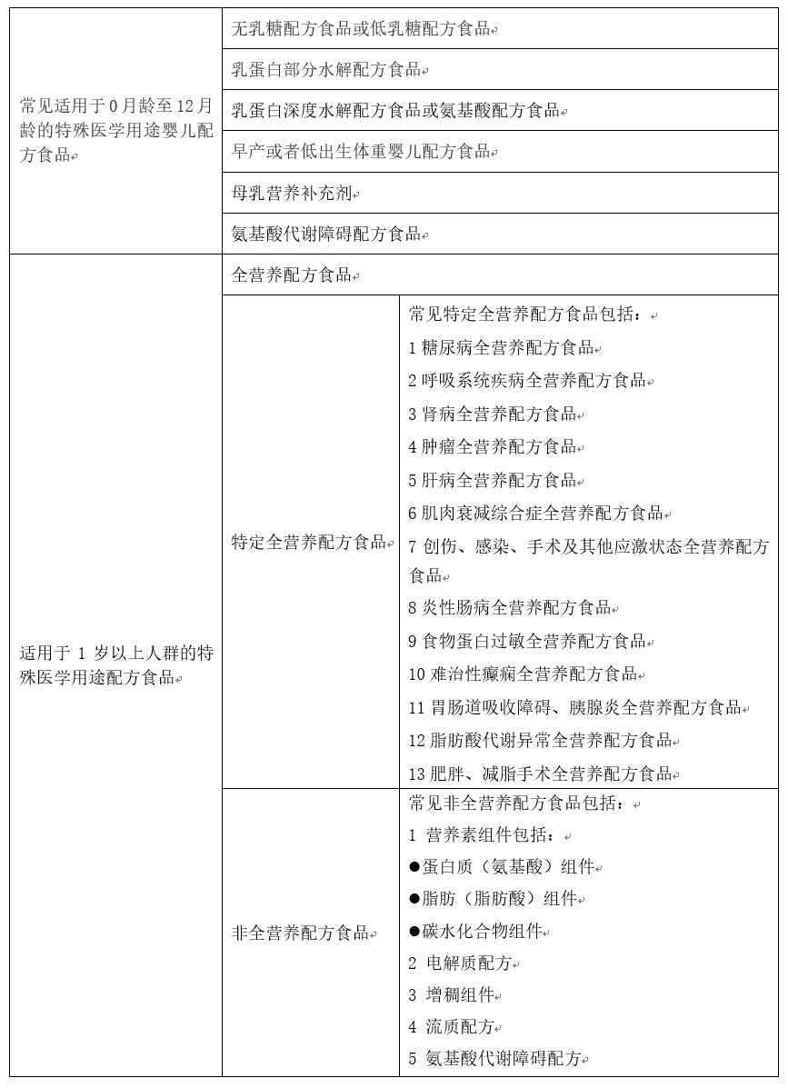 《特殊醫(yī)學用途配方食品注冊管理辦法》中說明,特殊醫(yī)學用途配方食品是指為了滿足進食受限、消化吸收障礙、代謝紊亂或特定疾病狀態(tài)人群對營養(yǎng)素或膳食的特殊需要,專門加工配制成的配方食品,包括適用于0月齡至12月齡的特殊醫(yī)學用途嬰兒配方食品和適用于1歲以上人群的特殊醫(yī)學用途配方食品。